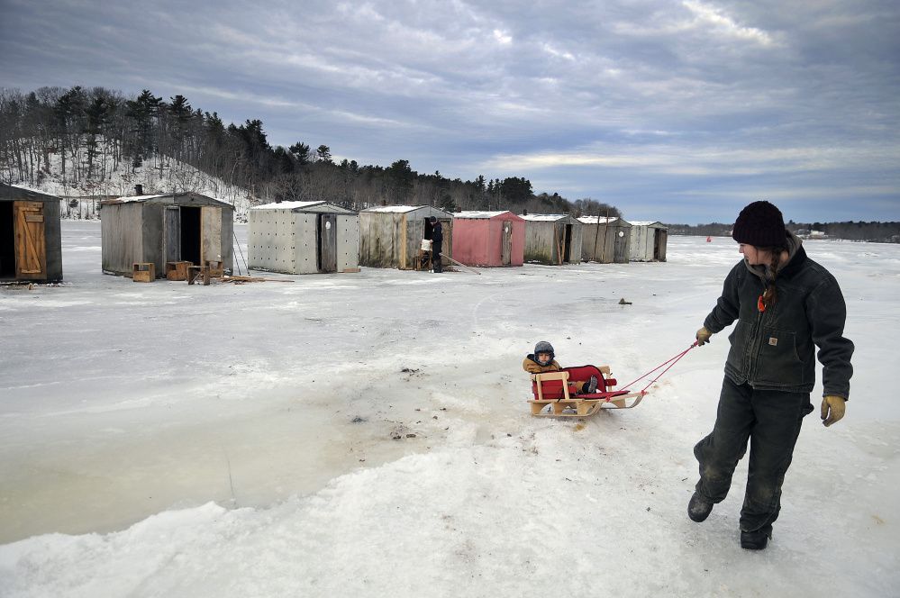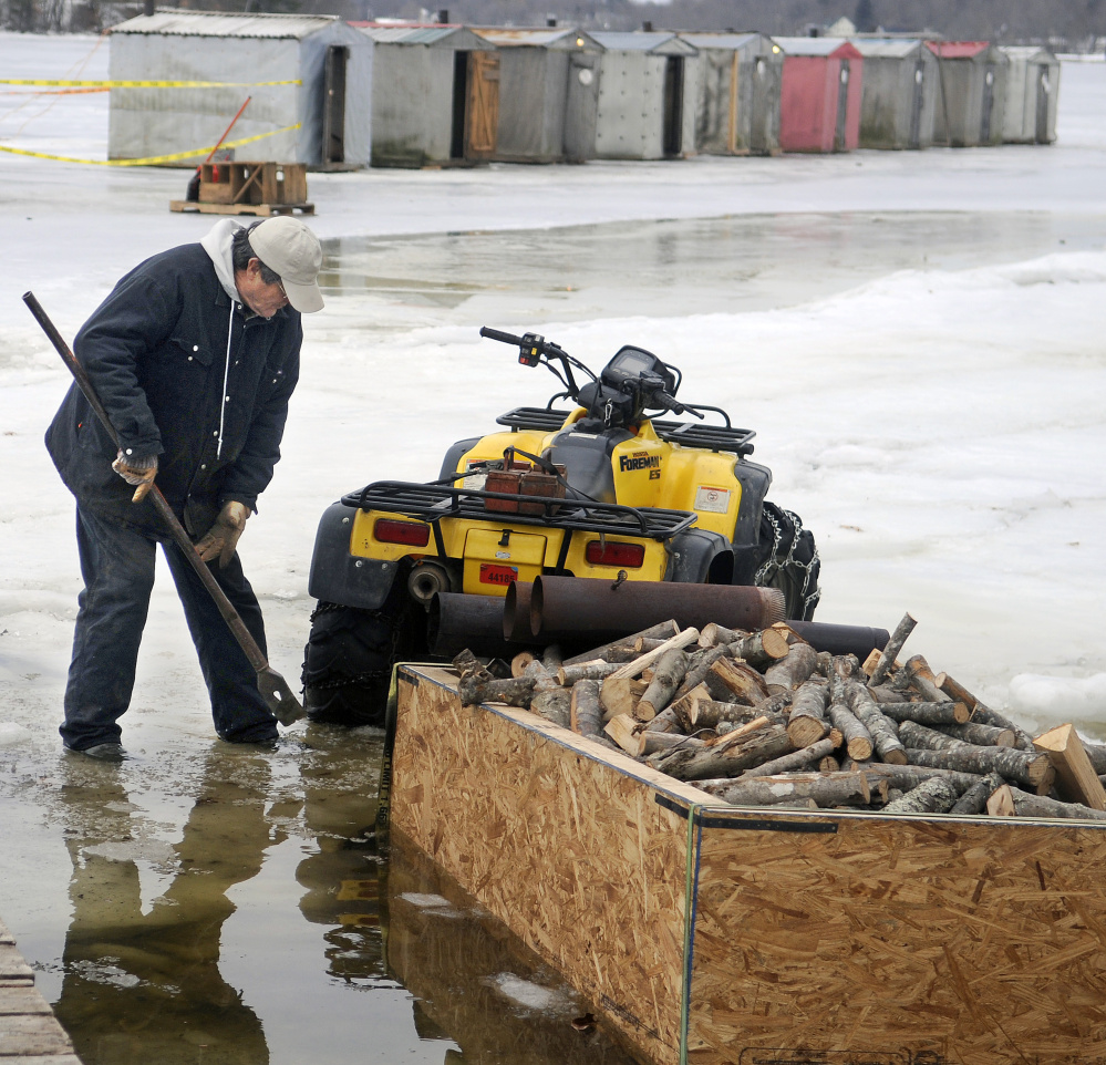 Last year, the Pittston-based business didn’t put out any shacks for the first time in nearly 40 years, but the camp already has put out 15 shacks on the Kennebec and may add more by the weekend.