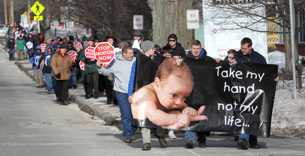 Event organizers billed the rally as providing “Witness for the Unborn.” This year, the short, two-block march to the State House from St. Michael’s School gym on Western Avenue was led by a youth ministry group from the Sanford-based St. Therese of Lisieux Parish.