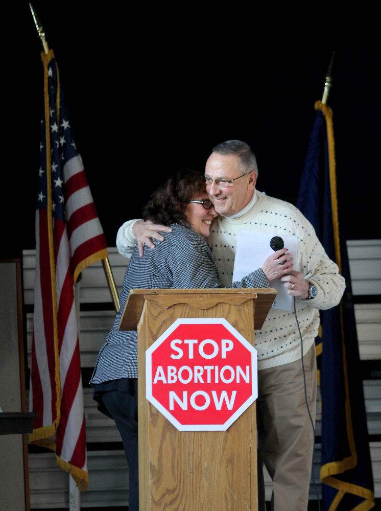 Gov. Paul LePage attended Saturday’s rally, as he has done each year since his election in 2010. He was joined by Maine’s 2nd District Congressman Bruce Poliquin, introduced as the lone “pro-life” congressman in New England.