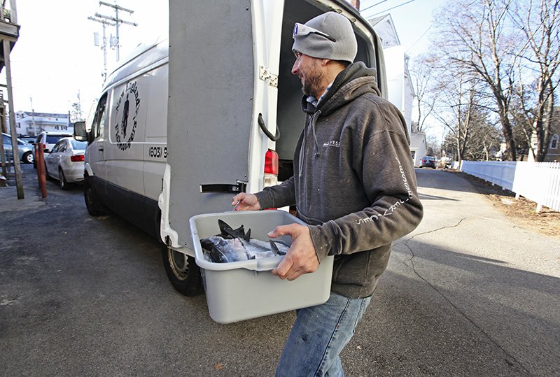 Jake Smith, chef at The Black Birch in Kittery, calls Rider’s haddock “the freshest, most beautiful fish I’ve ever seen.” Dylan Harrigan, chef de cuisine at Robert’s Maine Grill in Kittery, said he appreciates that Rider treats under-used fish as fastidiously as other more popular fish. Few fishermen sell dogfish, for example, Harrigan said, and those who do rarely gill and gut it as Rider does. Rider’s dogfish, he continued, have “great flavor and amazing texture” and hold up extraordinarily well.