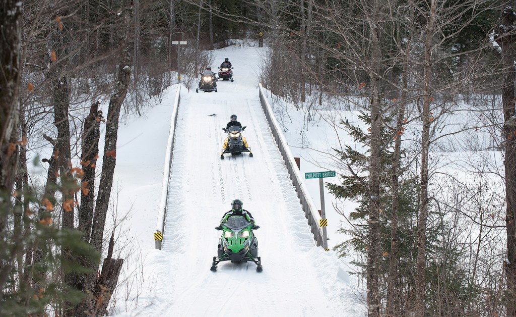 Formed 30 years ago, the Bowlin, Matagamon, Shin Pond Snowmobile Club maintains 125 miles of trails in the region north of Millinocket, and now also in the monument. Having well-maintained trails are vital to the business snowmobiling brings to the region. Hill said the club plans to keep the trails in good shape to keep drawing riders from across the eastern United States.