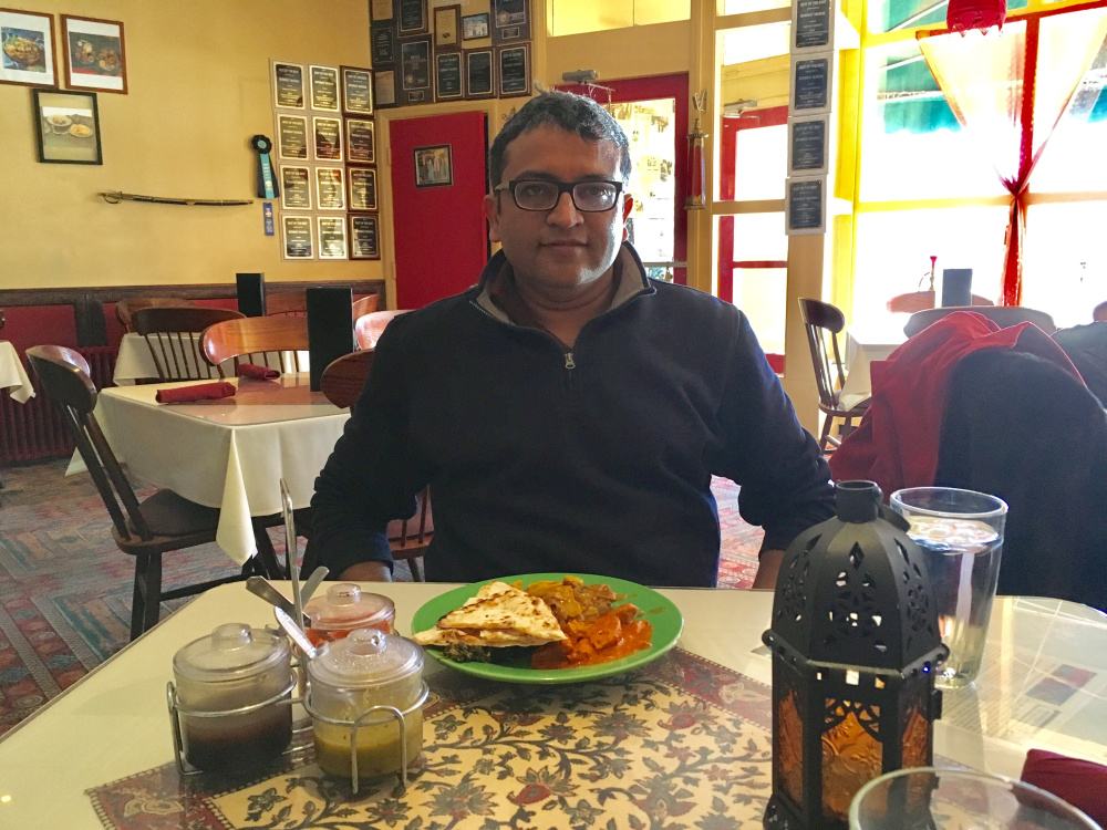 I stood awkwardly at the entrance to Bombay Mahal until an Indian man materialized, smiling. Did I want to eat, he asked. I wasn’t hungry and I hadn’t planned on eating out. But I told him I’d just moved to Brunswick for my wife’s work, and that I was happy to find his restaurant. I promised to come back soon.