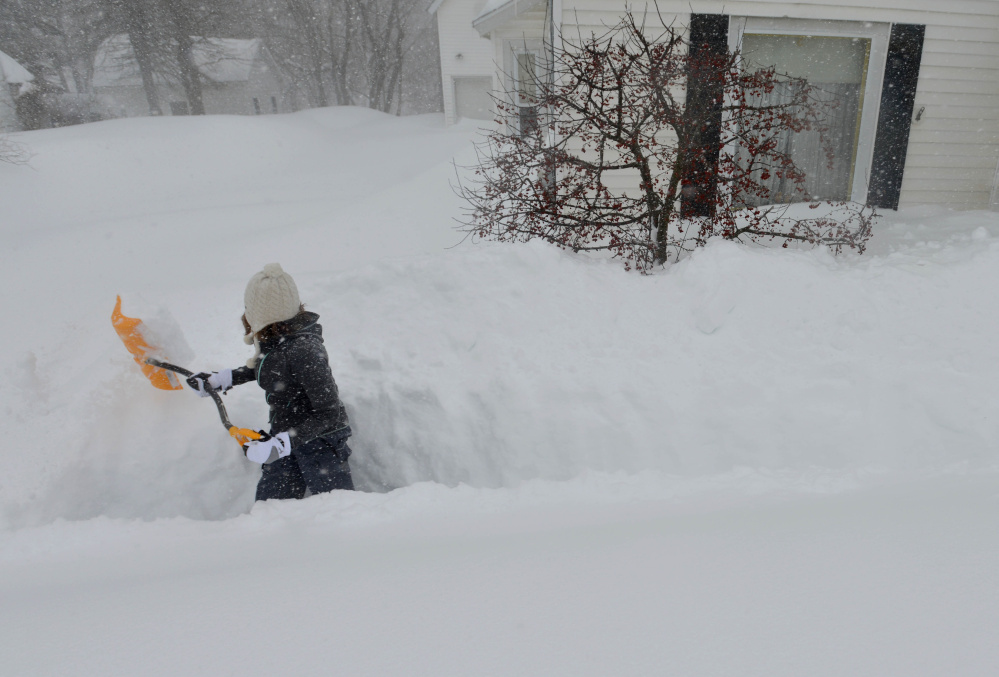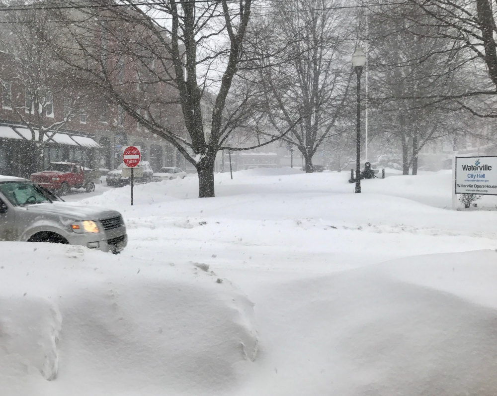 About 2 feet of snow had fallen in several spots in the Augusta-Waterville area by Monday afternoon as the storm wound down, according to the National Weather Service. The snow was even higher in some spots where wind drifts created towering white blockades.