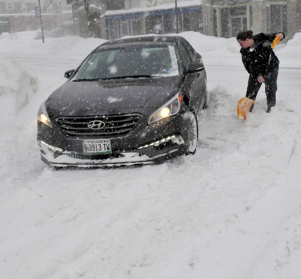 Central Mainers are digging out from a powerful winter storm that unleashed blizzard conditions across the region on Monday, as strong winds and heavy bands of snow shut down some roads and kept plow truck drivers, tow trucks and emergency responders busy.