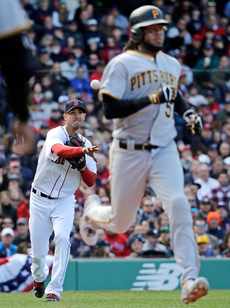Bradley woke up Fenway with his triple off the right-field wall. Sandoval’s grounder was to the shortstop-third base hole. The throw to first was high, but Sandoval had it beat anyway.