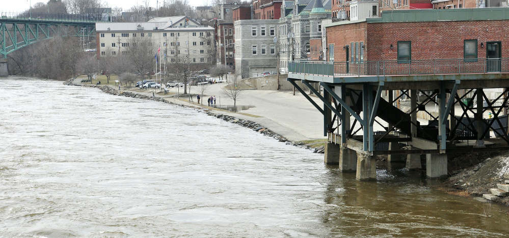 The Kennebec River was whitecapped and roaring as it passed through downtown Augusta on Wednesday afternoon. Logs and pieces of debris bobbed on its surface, and passers-by stopped to behold its might.