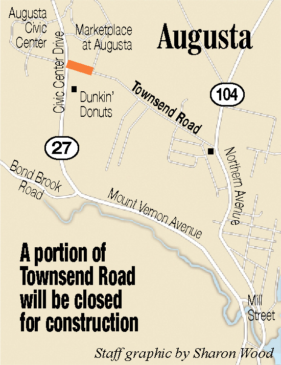 AUGUSTA — Townsend Road will be closed Monday morning between Civic Center Drive and the back entrance to the Marketplace at Augusta as part of a larger road and stormwater system construction project.