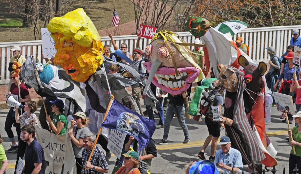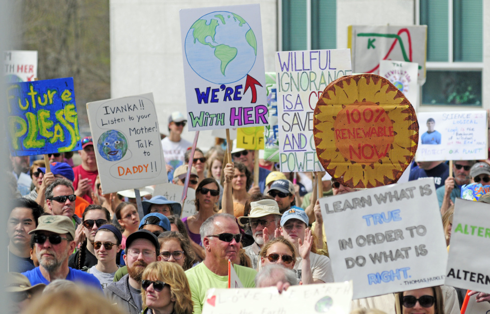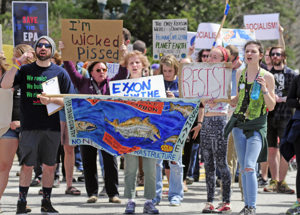 Other concerns were visible in signs held by rallygoers: “Solar Now,” “Protect Mother Earth” “Save Our Lobster,” “Save Our Syrup,” “Impeach traitor Trump Putin’s puppet,” and “(Scott) Pruitt is Repulsive Save the EPA.”