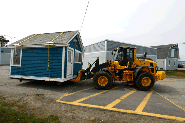 On Thursday afternoon, students in the heavy equipment operations program had just begun moving the building to a field near the lighthouse when it tipped off the forklift-style front-end loader and nearly crashed onto the pavement and some parked cars.