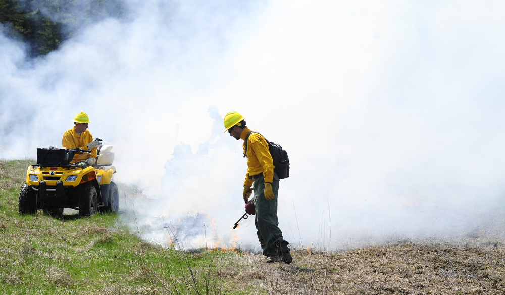 Before Thursday, Inland Fisheries & Wildlife hired a private contractor, John Leavitt, of Cumberland, to monitor the wind conditions, moisture levels and other factors that can make burning brush dangerous or impractical. Leavitt also notified a number of local fire departments that the burn would be taking place.