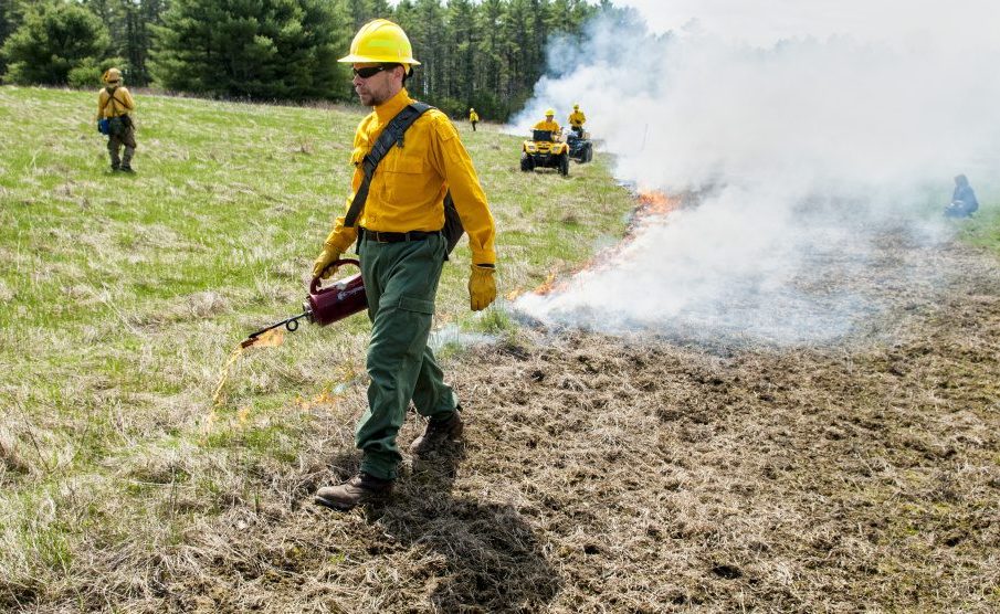 “This is great because it’s pretty quick and cost-effective,” said Ryan Robicheau, a regional supervisor for Inland Fisheries & Wildlife who was helping on Thursday. “Rather than adding amendments to the soil, the burning creates those nutrients. … The end goal is to perpetuate the habitat for nesting bird species, as well as the quality of the field.”