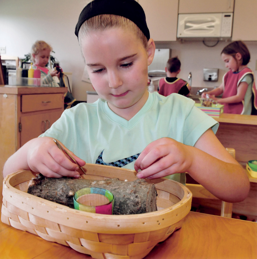 Patti Bailie, an assistant professor of early childhood education at the University of Maine Farmington, said what sets Montessori schools apart from more traditional classroom environments is the approach set in place by Maria Montessori. Bailie said Montessori focused on children in inner cities who led unstructured lives and so developed materials and ways of helping students become their own teachers and create their own structures.