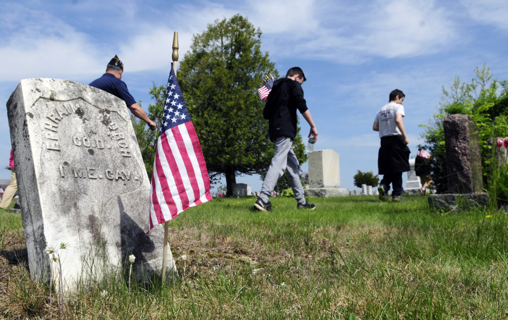 Betts said a Boy Scout troop would be working Thursday night to place flags at veterans’ graves at Holy Family Cemetery, on Townsend Road across from an entrance to the Marketplace at Augusta.