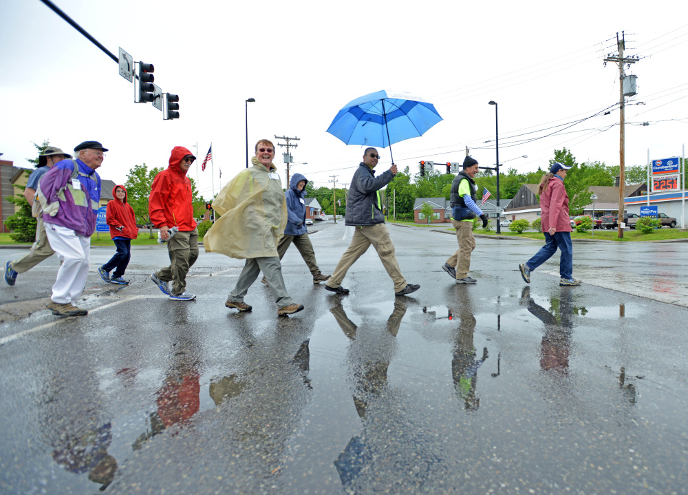 Fairfield police Officer Shanna Blodgett escorted the hikers across the street downtown at the start of the walk.
