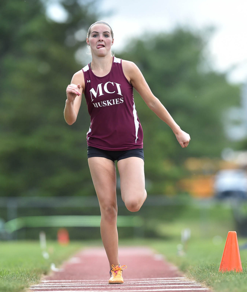 Maddie Amero of Monmouth finished second in the javelin (112-9), finishing behind Morgan Dauk (115-7) of George Stevens. Also placing second was Victoria Friend of MCI (32-3.25) in the triple jump.