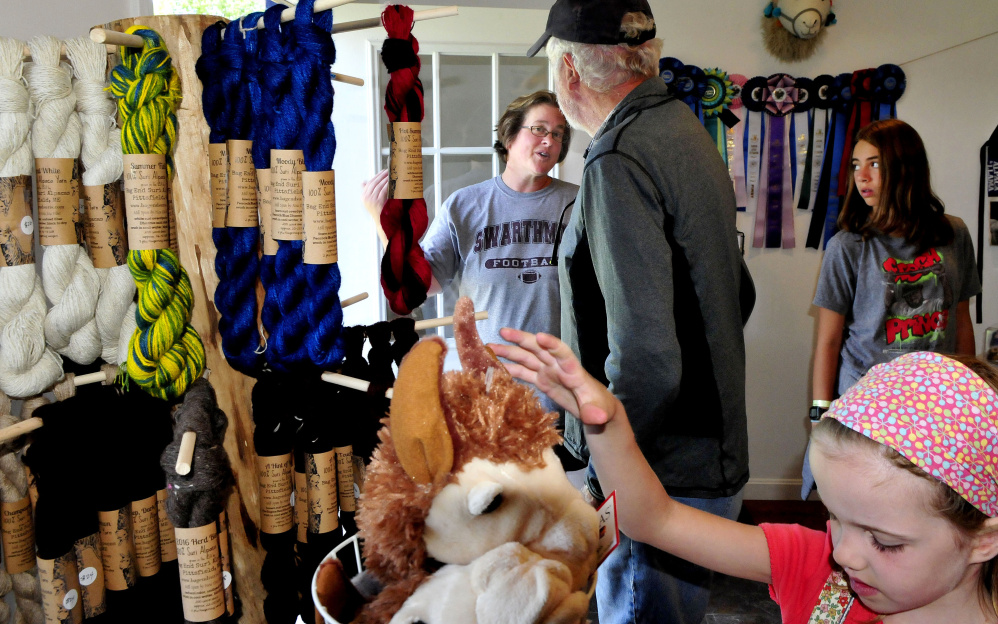 In a little farm store McElderry-Maxwell started last fall she sells vividly colored yarns made from alpaca fleece. The store also features clothing made by the New England Alpaca Fiber Pool, a collective where McElderry-Maxwell sends some of her alpaca fiber to be processed.