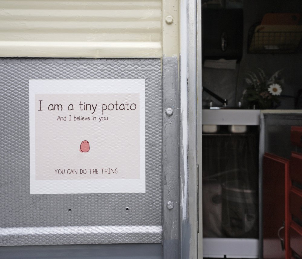 This is Rhoads’ first summer running her mashed potato business; she’s doing so out of her 1972 Shasta trailer, which she has affectionately named Spud. She left Yarmouth Elementary School at the end of the school year after teaching fourth grade there for nine years. Before that, she taught in New York City public schools for 13 years.