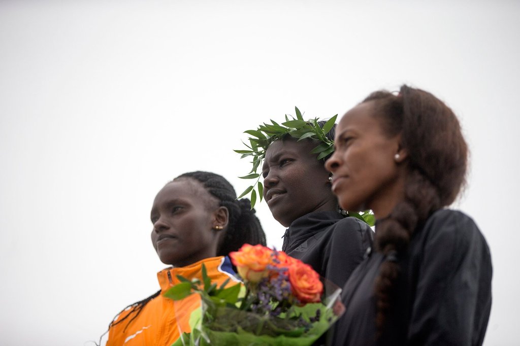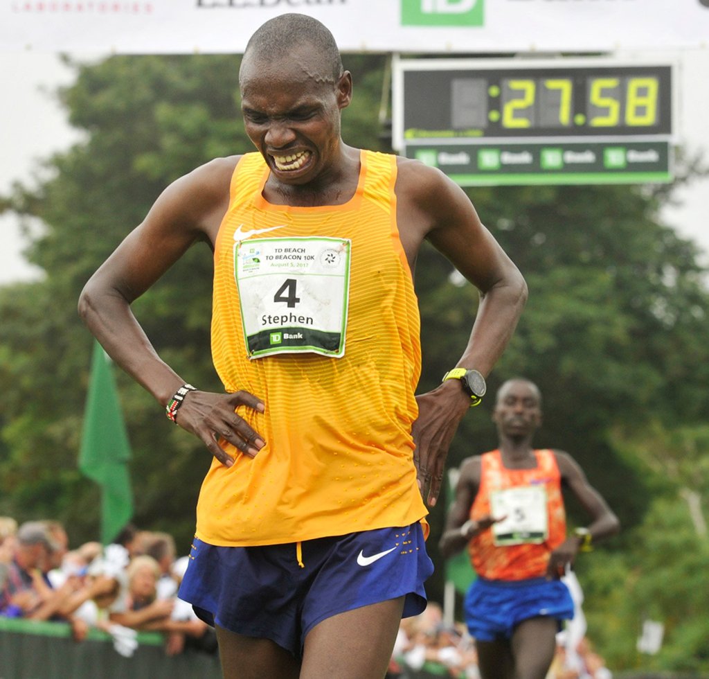 Fog obscured the icon-on-icon image for late arrivals to Fort Williams, but Kenyan champions Stephen Kosgei Kibet (by one second over 2016 winner Ben True) and Mary Keitany (another course record) saw it clearly, as did Abdi Abdirahman, 40, who broke a 17-year-old course record for masters.