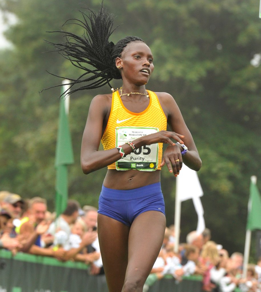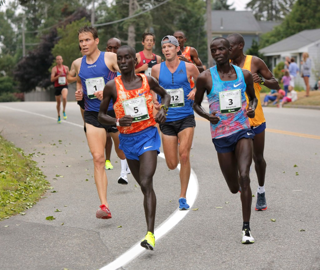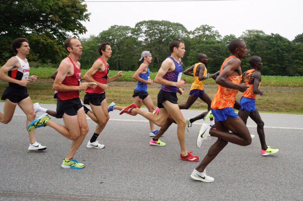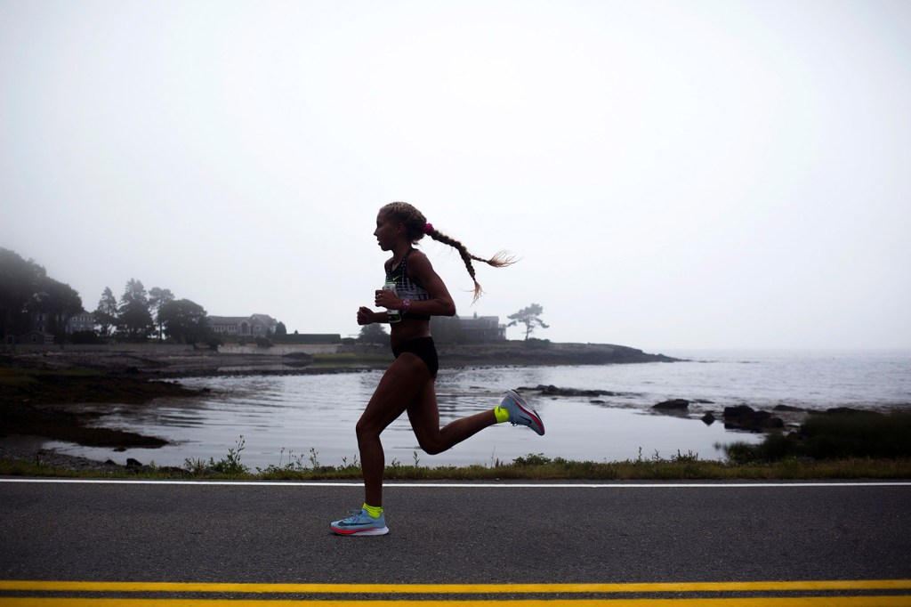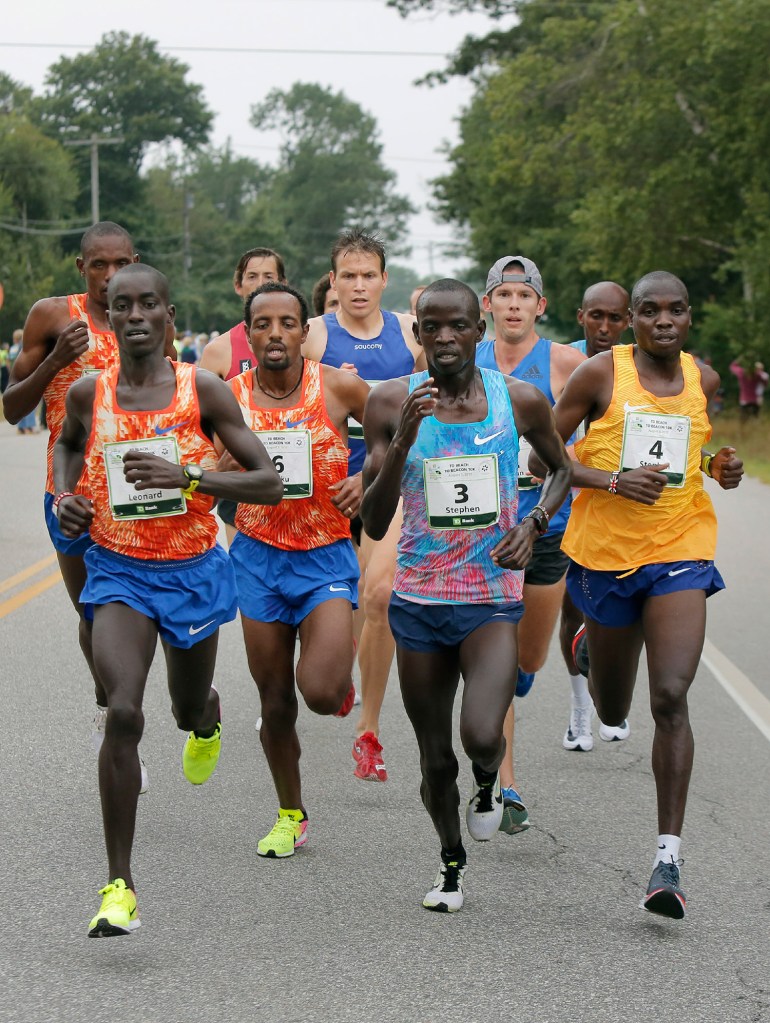 There was some confusion about whether Samuelson’s time will be certified as a U.S. age group record because Beach to Beacon is a point-to-point course, thus susceptible to assistance from wind. What little breeze there was Saturday morning seemed come off the ocean more as headwind than tailwind. And there is precedent: Mbarak Hussein set the USATF men’s 45-49 record of 29:55 at the 2010 Beach to Beacon.