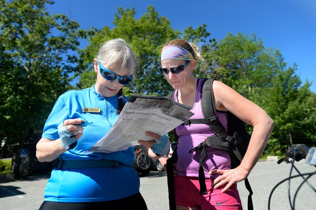Marsha Skoff of Sunbury, Pennsylvania, was visiting Acadia by herself for the first time. So Lyons introduced herself and asked if she could help. Clearly from Skoff’s athletic attire and physique, she was ready for a 10- to 20-mile bike ride and game for any climb.