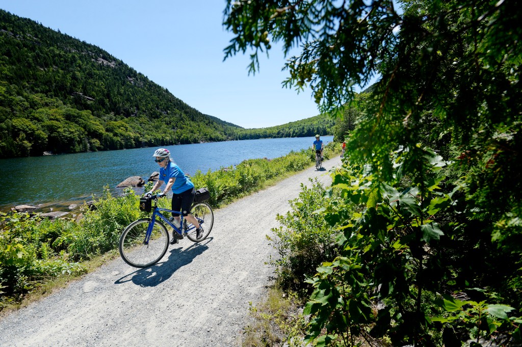 “You won’t get a better view of Jordan Pond than if you go up these hills here,” Lyons said, pointing to her laminated map. “And you’ll see many of the Rockefeller bridges there. They were built in the 1920s and the early 1930s. The only way you’ll see those bridges is if you bike or hike to them.”