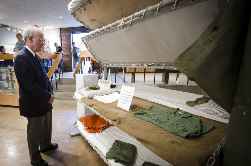 “It brings back a lot of memories,” Lambert said of the exhibit. “It was extremely hot in the middle of July, and there were 5,000 men on the ship, so it was very crowded. … We also had small duffel bags that we had to fit in our bunks, and we had rifles that we had to sleep with, and there was no air.”