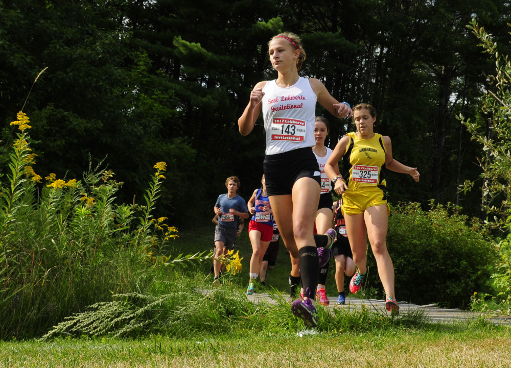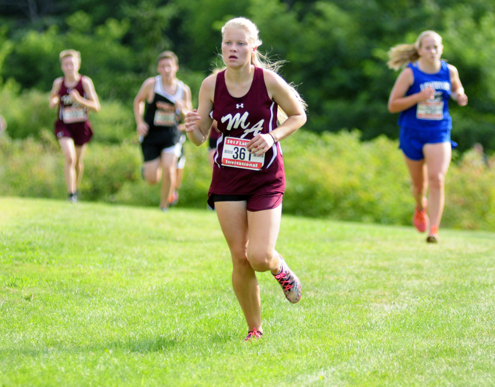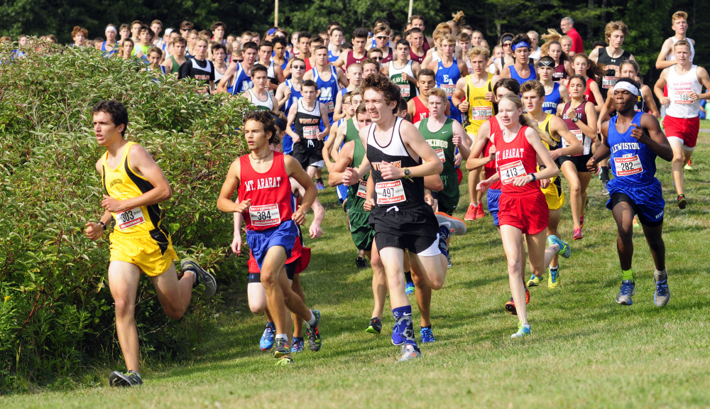 Mt. Ararat also had the top girls result in the race, which combined both genders in one running. Katherine Leckbee had the top girls finish (23rd overall) at 15:34, while Edward Little’s Jillian Richardson was next among the girls at 15:44, followed by Maranacook’s Molly McGrail (16:25) and Gorham’s Iris Kitchen (16:35) and Anna Slager (16:48).
