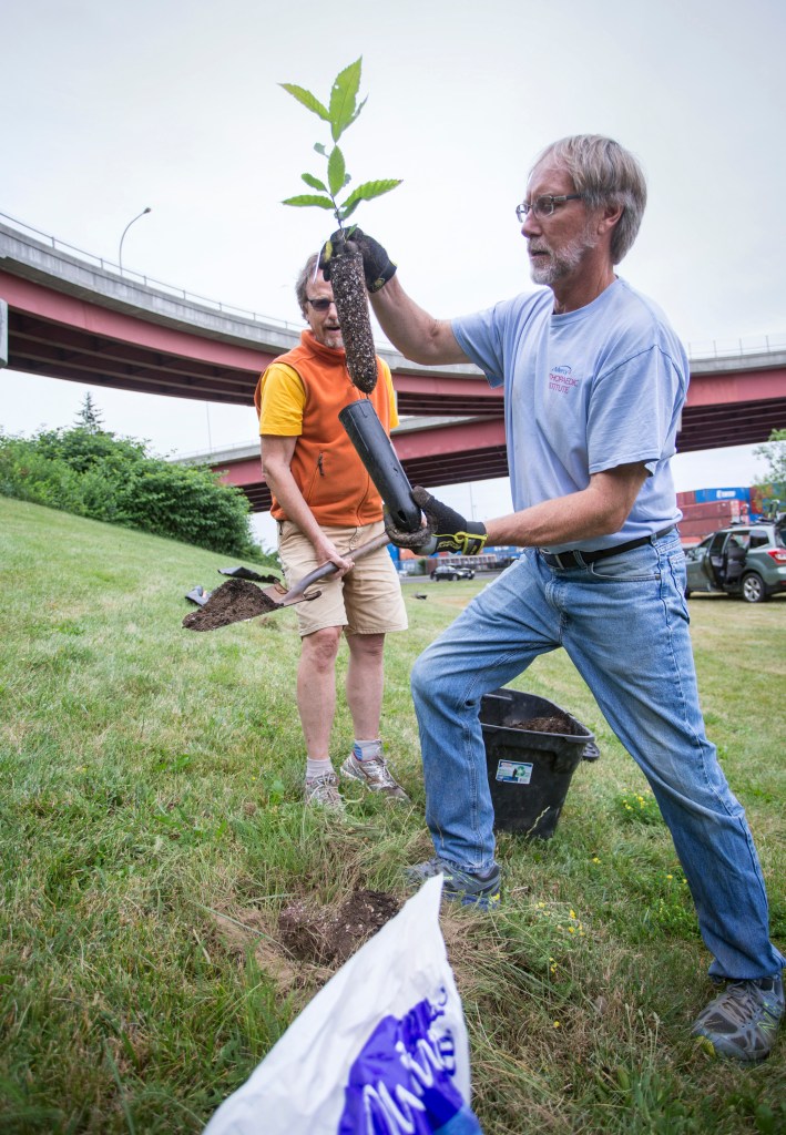 Six of the disease-resistant hybrids were planted in July at Harbor View Park, part of an “edible hillside” planned by the West End Neighborhood Association.