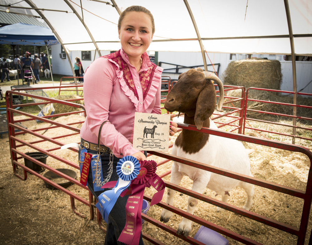 WINDSOR — By 10 a.m. Sunday, Emily Williams was coaxing her herd of goats, one by one, to parade through an open barn at the Windsor Fair and to show their figures to a judge who was handing out blue, red and white ribbons.