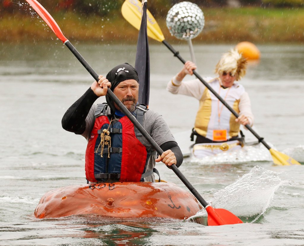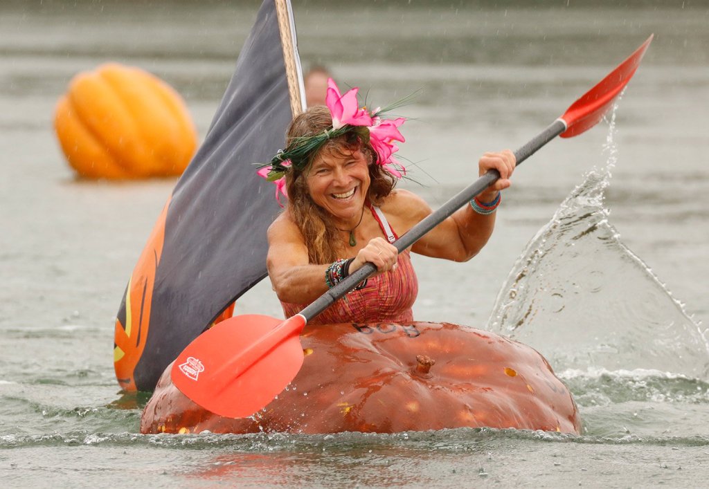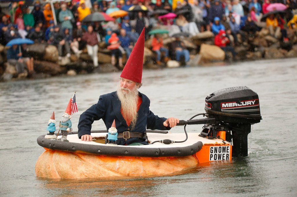 Costumed as vikings, pirates and gnomes, they battled for Pumpkinfest titles and the coveted Golden Gourd trophies. And plenty of pumpkinboat fans braved the rain to watch the orange ships sail through the harbor.