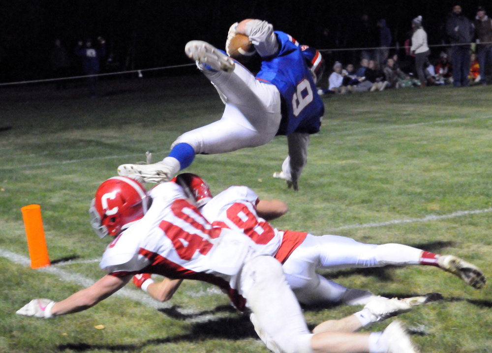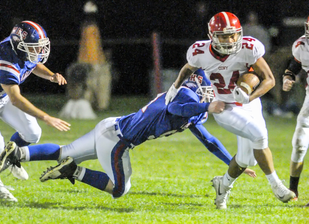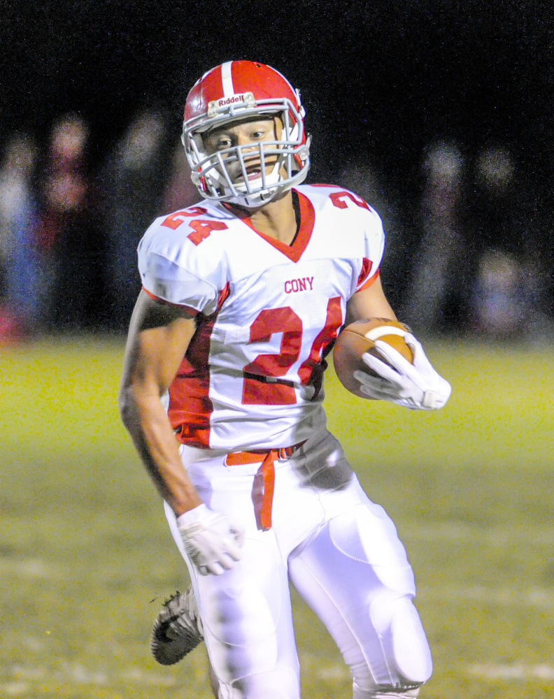 “With the game on the line, No. 14 running for the pylon, I was pretty confident he’d get in,” Cony coach B.L. Lippert said. “Some of these gray hairs that are cropping up are maybe from Anthony’s decision-making throwing the ball tonight, but I love the way he plays the game on both sides of the ball. He’s a winner, and in crunch time I guess we saw that again.”