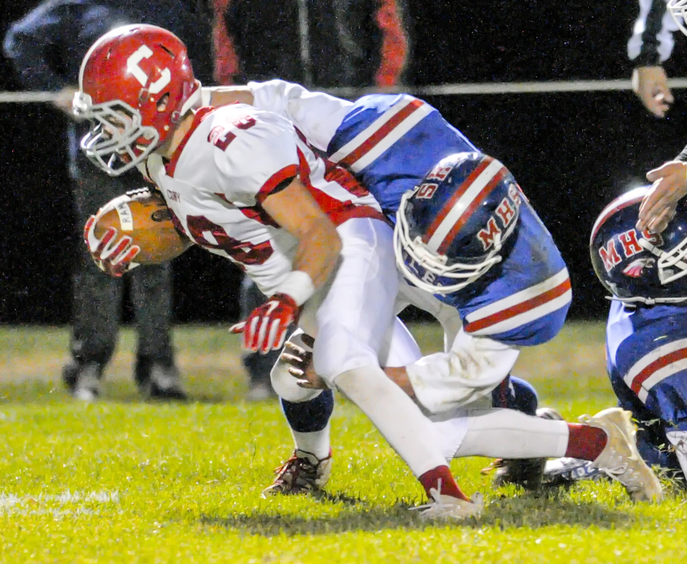 Cony’s defense held on the next series, forcing an incomplete pass on fourth-and-1 from the Eagles 45 to ice the win. Mistakes on offense haunted Messalonskee with the game on the line; the Eagles fumbled away the ball near midfield in the third quarter, had a false start turn a third-and-6 at the 11 into a third-and-11 from the 16 on the field goal drive, and committed a false start and gave up a drive-killing sack before the high snap on the second-to-last drive of the game.