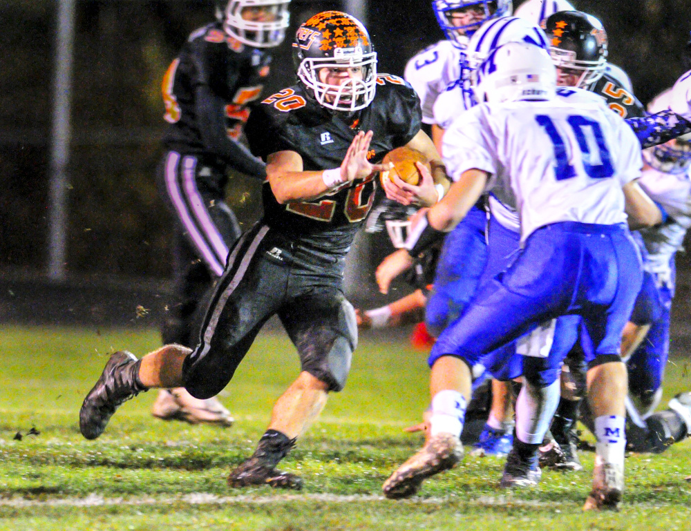 And asolid group of running backs. Collin Foye has flourished as the leading rusher of late, piling up big games in wins over Freeport and Cony, but the elusive senior struggled to find space Friday night as the Shipbuilders seemed to be on every juke, cut and sweep.