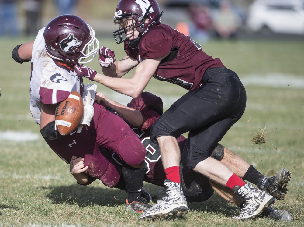Nokomis answered quickly, when Colby Pinette scored on a 12-yard run with 6:33 to play. The 2-point conversion pass was intercepted, and MCI’s lead was 27-18. The Huskies again mounted a long drive, this time going 53 yards in 11 plays and 5:17, scoring on a 1-yard plunge by Bussell with 1:13 to go.