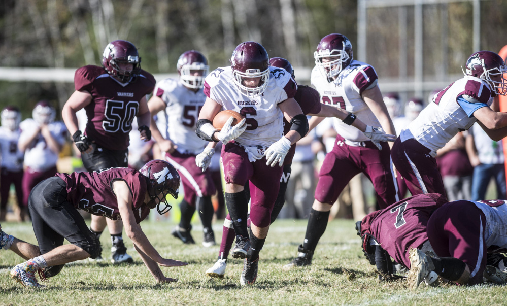 NEWPORT — Offensively, Maine Central Institutes’s game plan wasn’t fancy, but it was certainly effective. In a Class C North quarterfinal football game Saturday at Nokomis, the Huskies were strictly smashmouth, running the ball 65 times for 360 yards. The result was a 33-24 win, and postgame smiles from the offensive line and backs.
