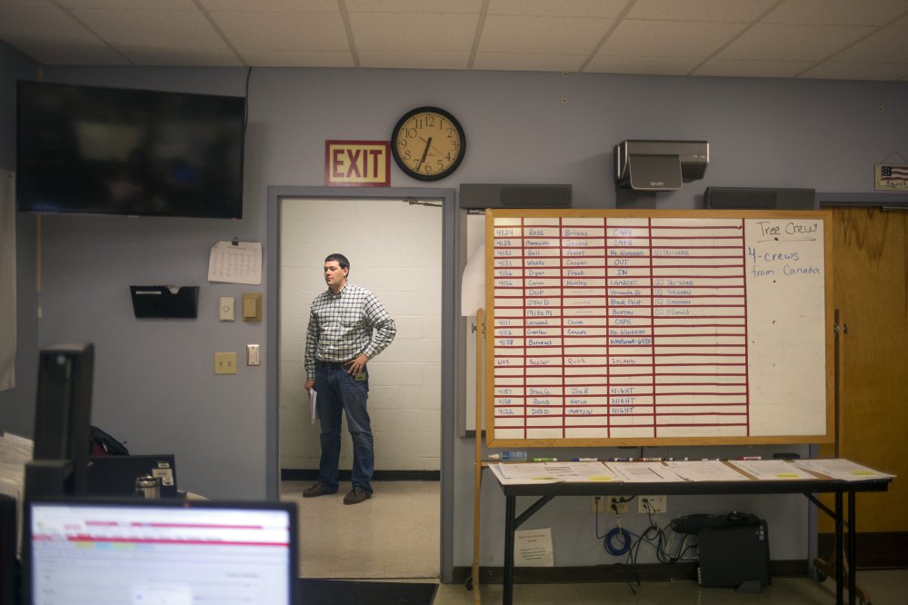 Across the service territory, similar plans were nailed down at CMP’s 10 other service centers. As the extent of the damage became clearer, CMP was ramping up the number of line crews from 200 on Monday to 450 on Tuesday, and the number of tree-trimming crews from 100 to 250. That didn’t include a so-far untallied number of digging crews to set new poles, crews associated with substation and transmission repair, and safety and assessment teams.