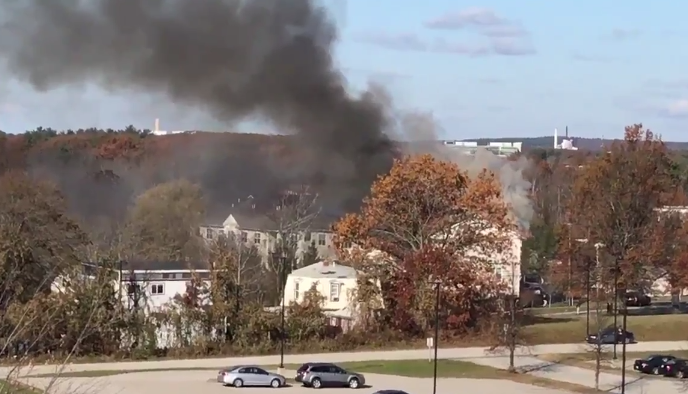 A column of black smoke was shown rising from the building in a video tweeted by South Portland resident Adrian Dowling.