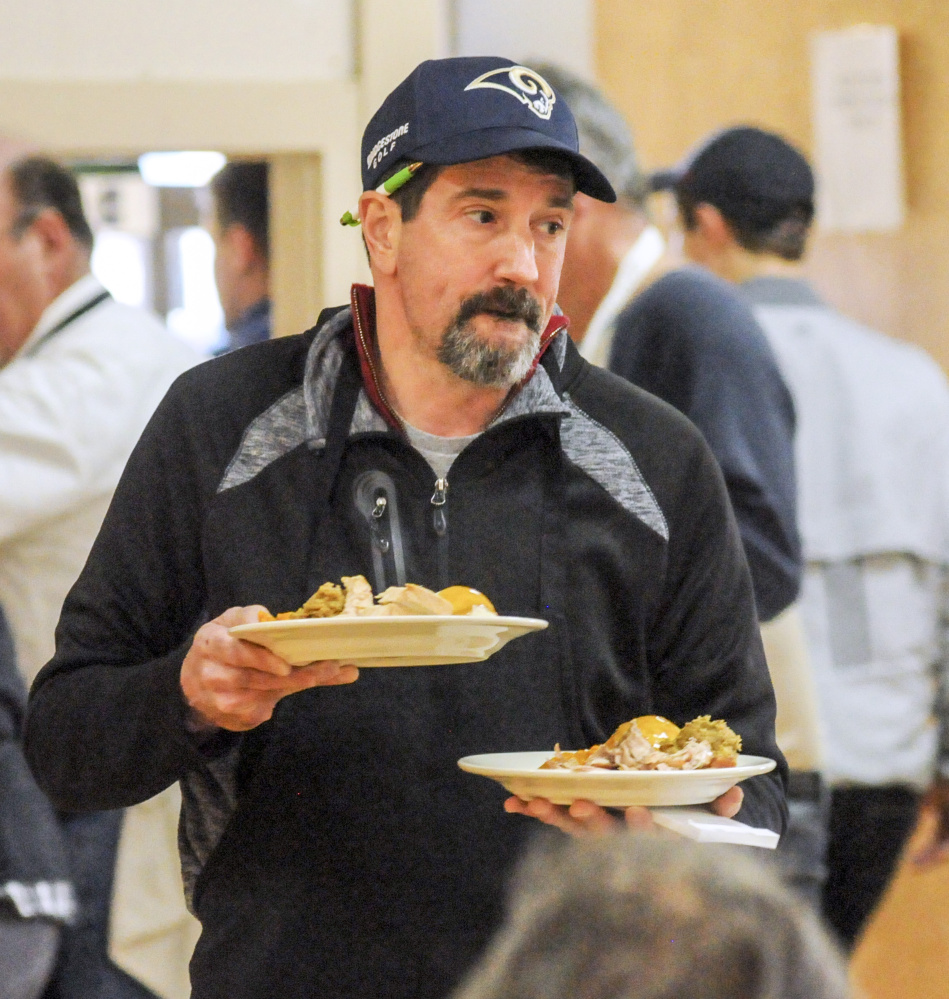 For the third year in a row, the Augusta organization offered free meals at its event space on West River Road, with all the usual fixings: turkey, gravy, mashed potatoes, squash, cranberry sauce and pie.