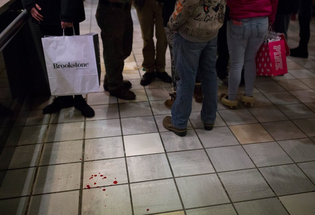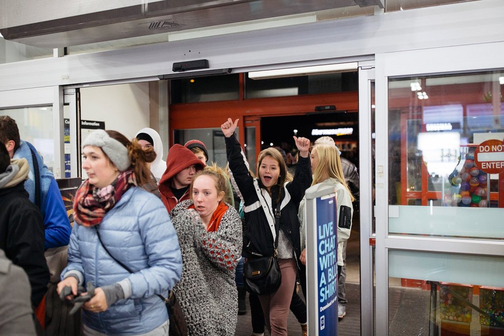 Nadeau said the mall was crowded at midnight, with lots of teenagers and people headed straight for doorbuster sales.