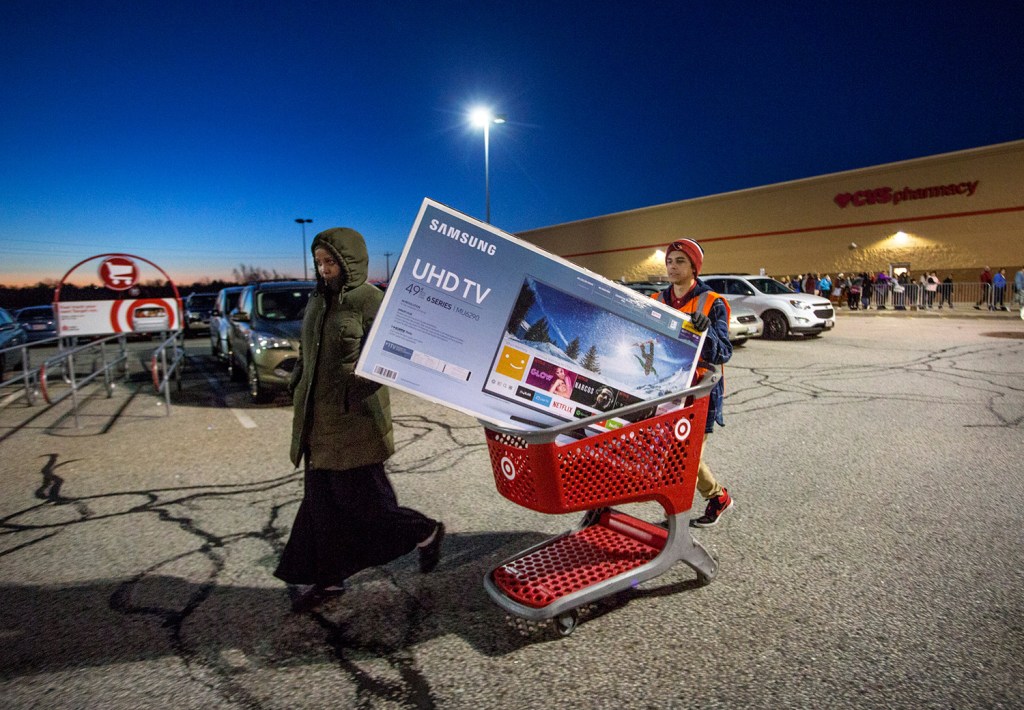 “I’m here for Amanda, my daughter,” said Gorham resident Sheila Richardson. “She spends all Thanksgiving making a (Black Friday) plan. She’s putting the first load into the car right now.”