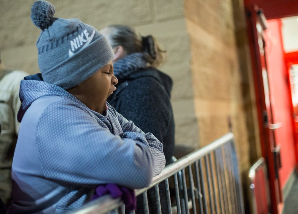 In the last minutes before the store opened, 10-year-old Deshawn Lamour bounced anxiously on his tip toes and rubbed his gloved hands together to stay warm.