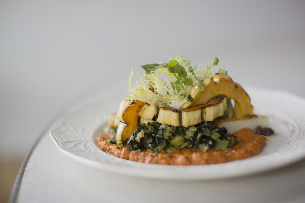 The “Vegetable” entrée at Chaval, with roasted celeraic, delicata squash, romesco Swiss chard and olive tapenade.