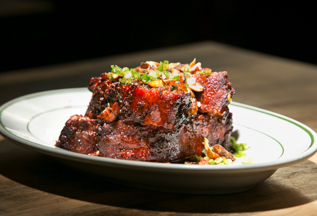 Pork ribs at Francine Bistro in Camden, coated in mustard and apricot jam, slow-smoked over apple and maple wood until they are as sticky as pine resin, then finished with salty-sweet Cambodian fish-sauce caramel and crushed peanuts. Messy, complex and undeniably extraordinary. The restaurant is closed until May, according to a sign on the premises.