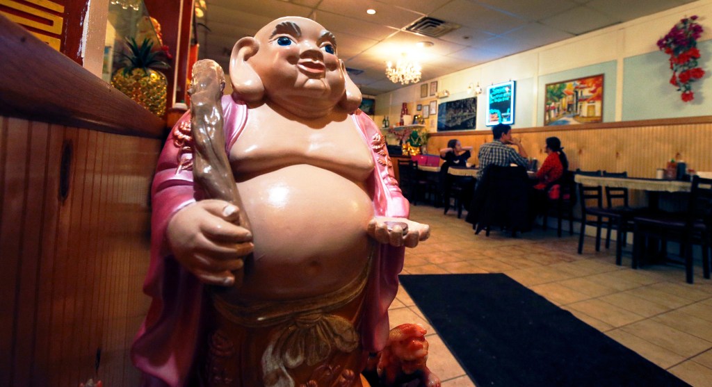 A Buddha statue greets guests at the entrance of Huong’s Vietnamese Restaurant.