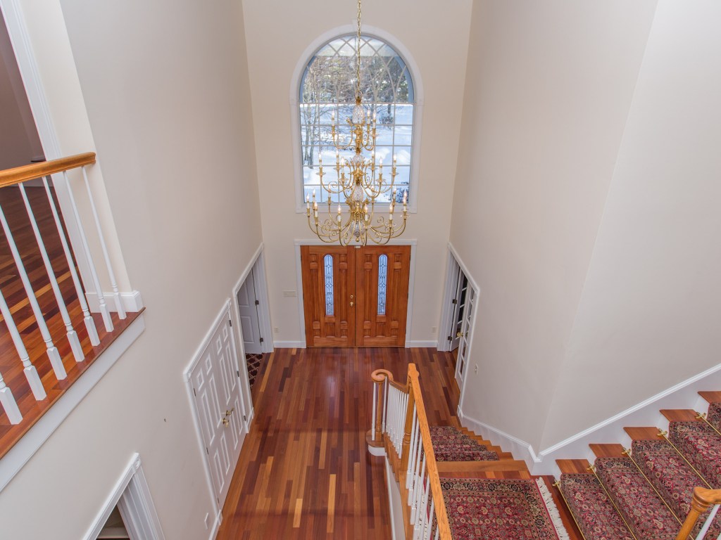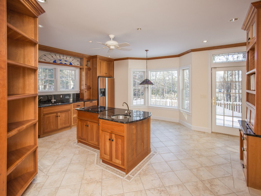 The home, of course, is just as pleasing on a winter day. From the back of the house, and from the expansive deck, it’s the season for water views, from high over Maranacook Lake. At 4,091 square feet and 10 rooms, the home is spacious, and as comfortable (each of its four bedrooms has a bath en suite) as it is elegant. Palladian windows are one design motif – for example, the two that are in the grand foyer and the two-story great room, and front-to-back, flood the interior with light.