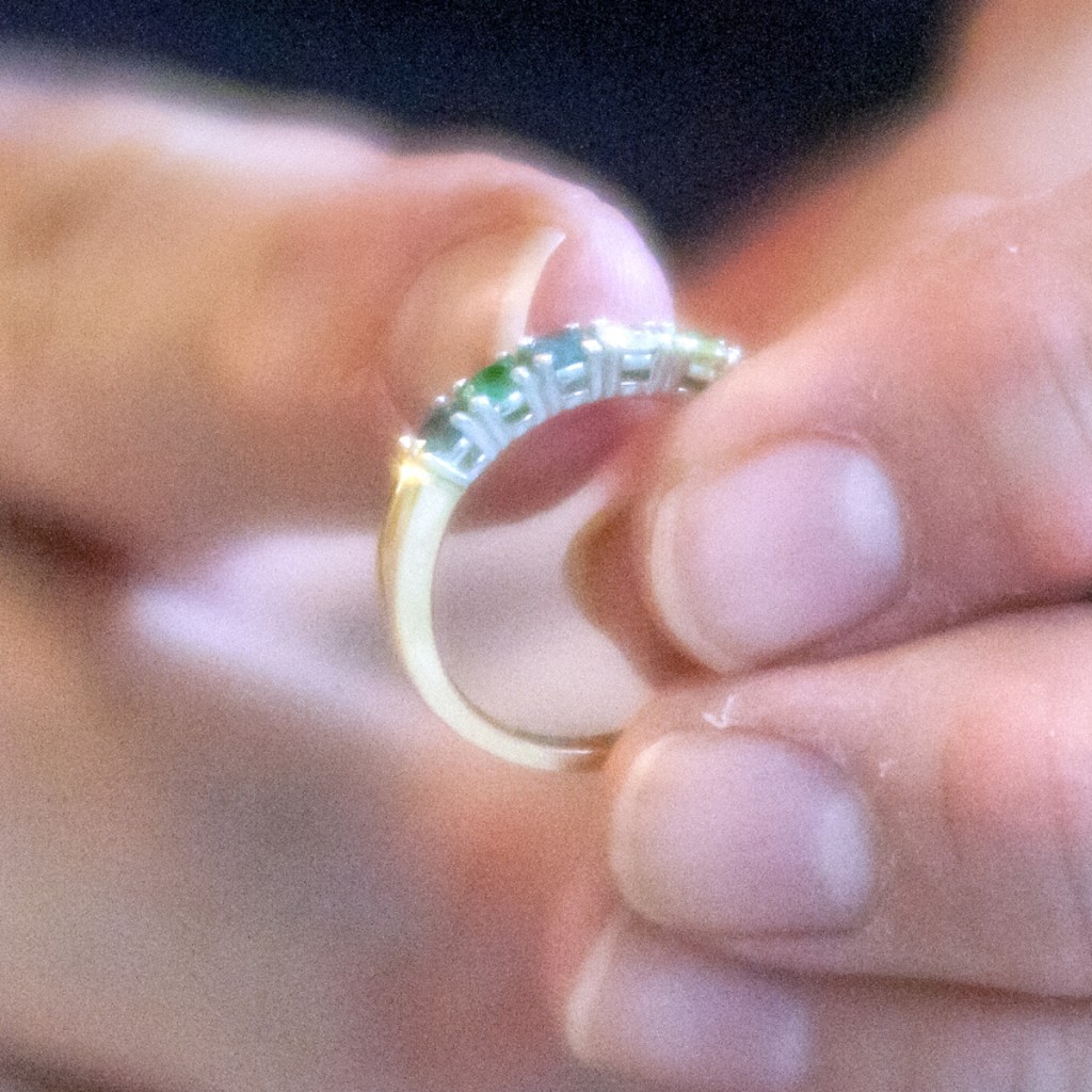 They never found her rings, although they looked desperately. Instead, she had a family ring made up with stones that represent the members of her family, and she wears it on left ring finger, she said, because that finger is connected directly to the heart.