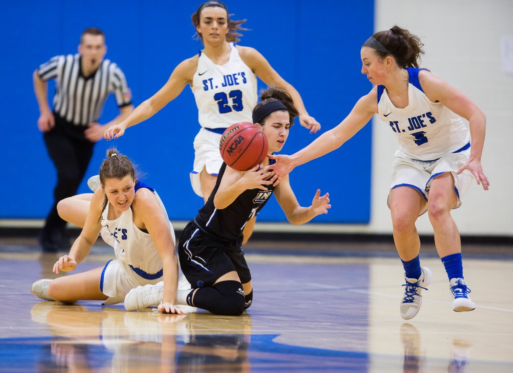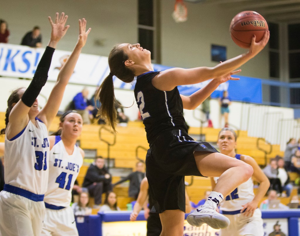 St. Joseph’s offense clicked all night. The Monks are known for their 3-point shooting, but they passed inside often, with 5-foot-10 Emily Benway scoring 18 on 9-of-10 shooting.
