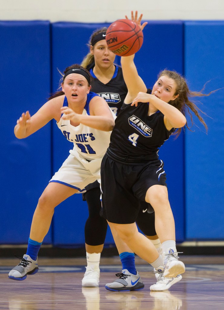 STANDISH — Early in the second half, when the University of New England still had hopes of catching up, St. Joseph’s College guard Kelsi McNamara dribbled up the court. She fired a pass to the corner, where Julia Champagne quickly dished inside to Regan McFerran.
