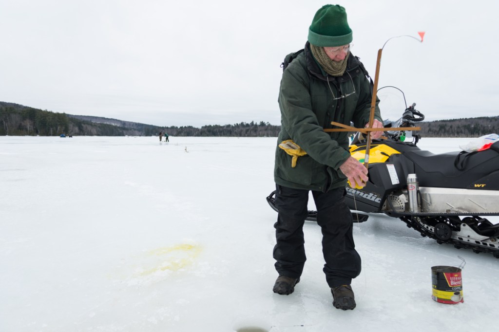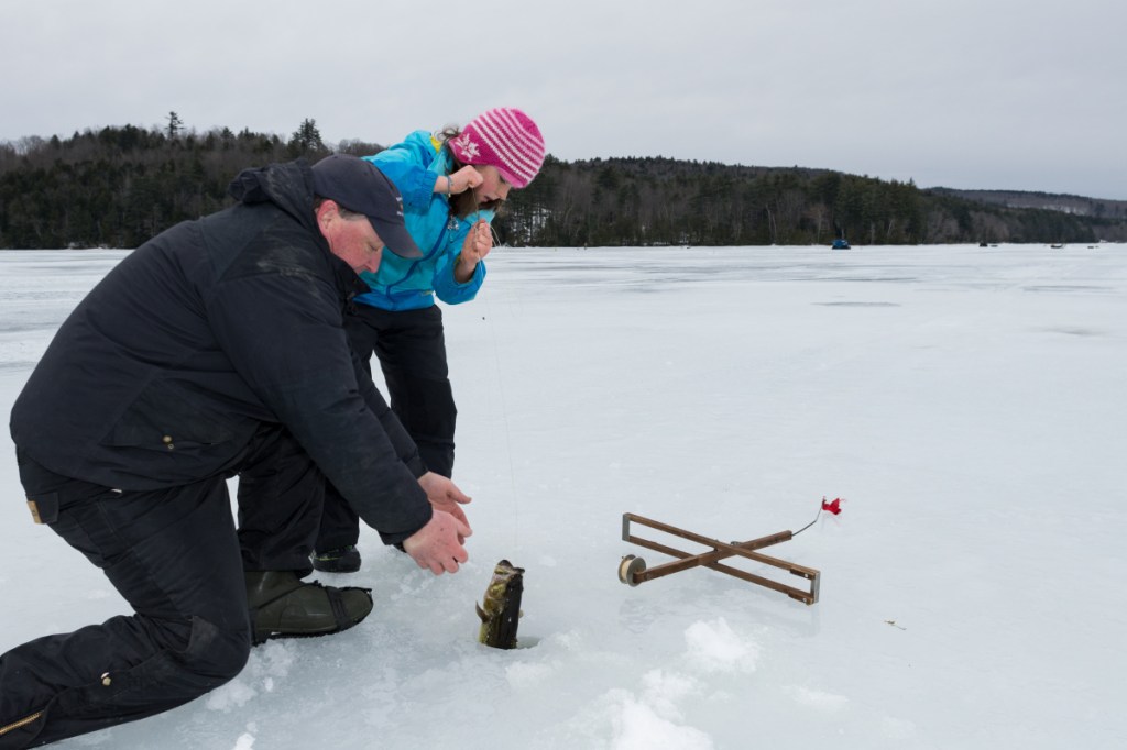 But Abby wouldn’t be taking the catch to her home in Winthrop after all. After a scale showed it to weigh a relatively modest 2.07 pounds, she dropped it back through the freshly drilled hole.