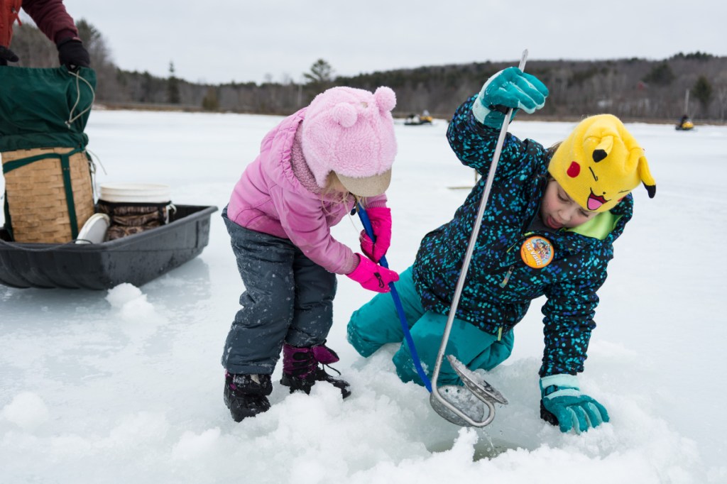 No bother, for the St. Clair family, the Sunday outing was the culmination of a week-long February vacation in which Abby, her older sister Sara, and her parents had been ice fishing multiple times. Earlier in the week, they’d caught — and consumed — a pickerel from Maranacook Lake. On Saturday, they’d participated in a much larger youth fishing derby hosted by Jacks Traps Ice Fishing Outfitters, on Cochnewagon Pond in Monmouth.